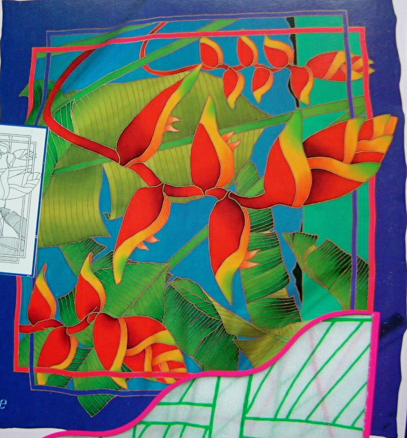 BALISIA ARTY'S GUTTA-SEIDENTUCH 90x90cm Ponge 5 Konturen schwarz