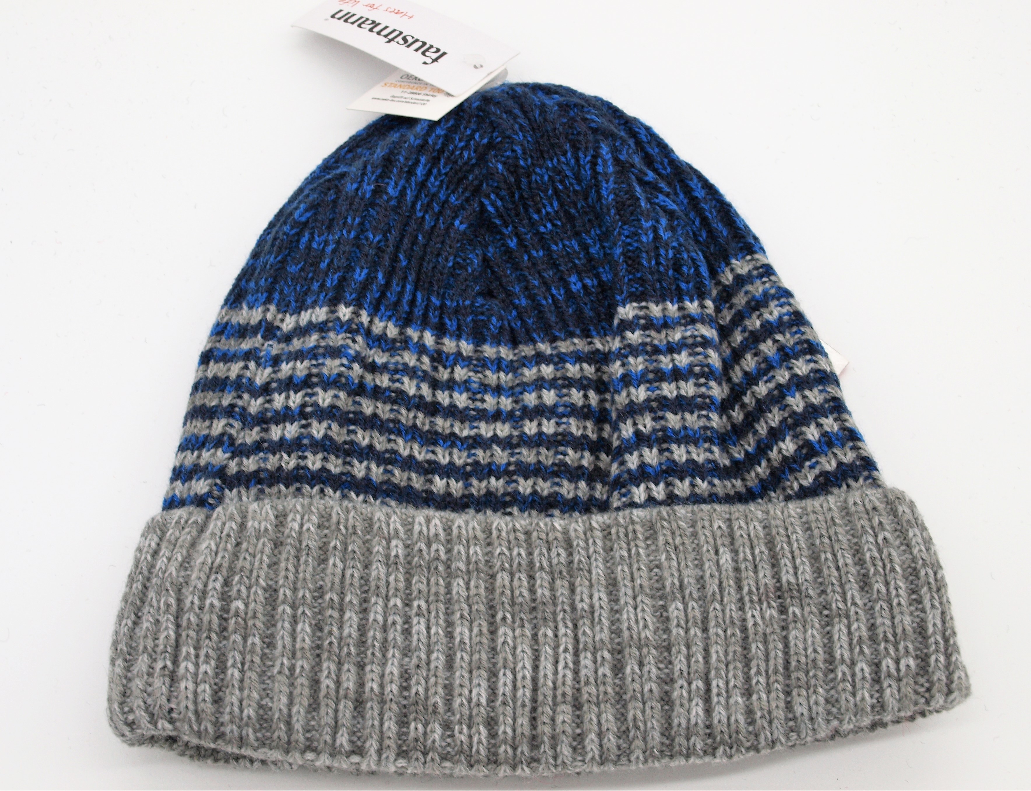 Faustmann Herren Strickmütze Streifen blau-grau