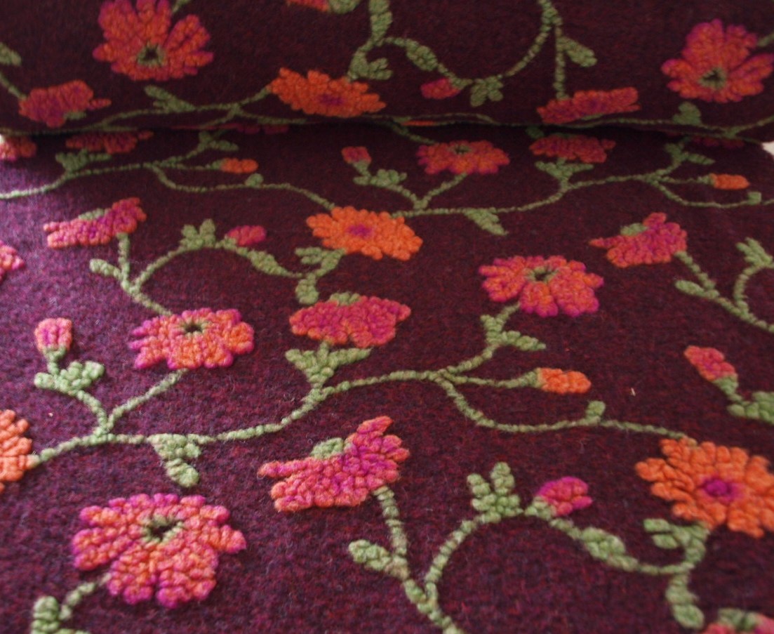 Ganz Neu Winter 2026/27 Musterwalk Blumen auf bordeaux Walkstoff Italien gemustert Walkloden