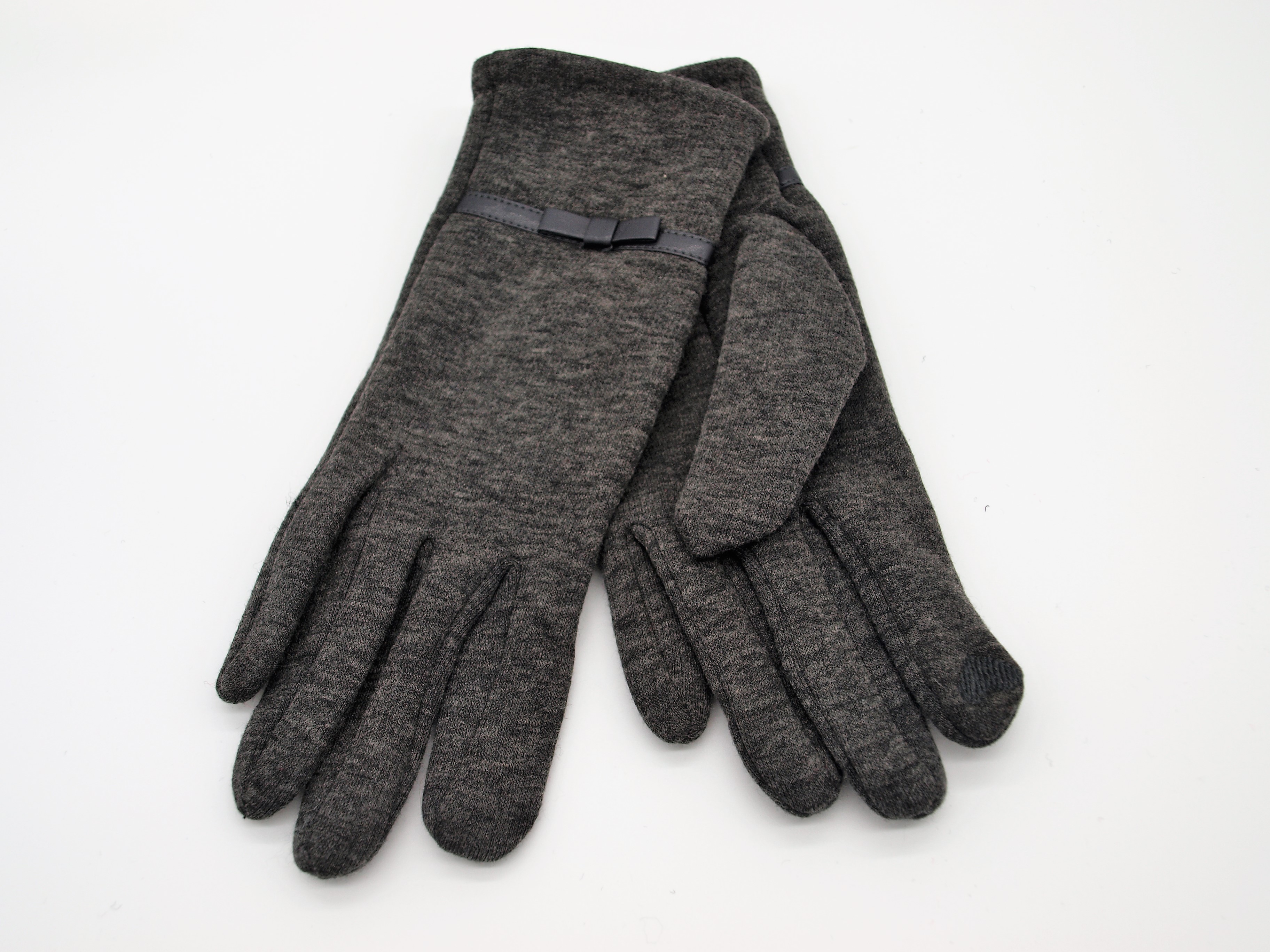 Handschuhe Jersey grau gefüttert touchscreen-kompatibel mit Kunstlederbesatz Schleife