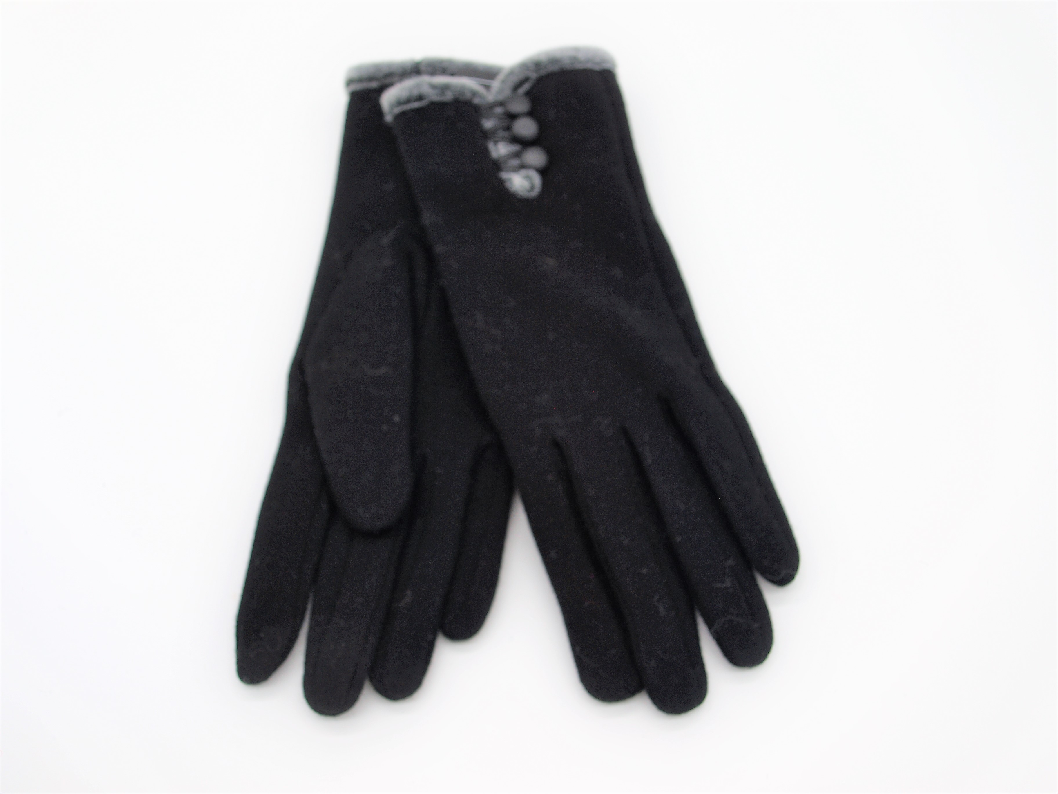 Handschuhe Jersey schwarz gefüttert mit Fellimitat Rand und Knöpfen