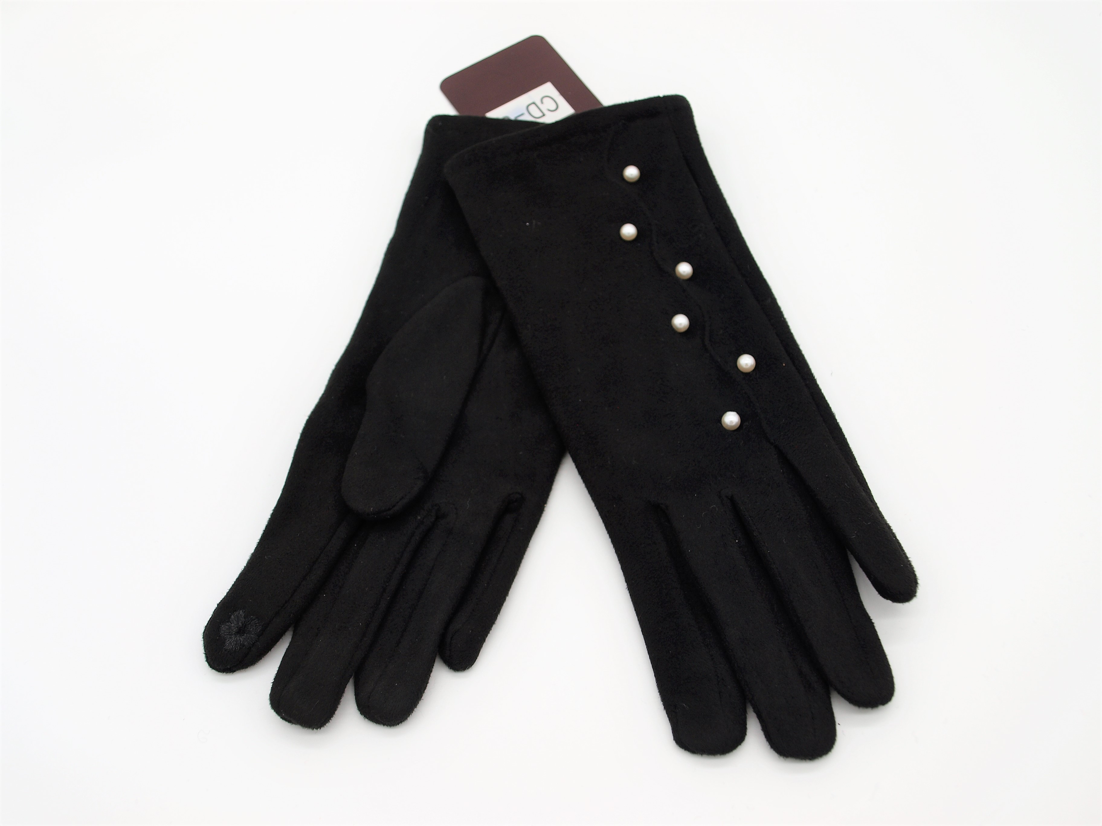 Handschuhe Perlen schwarz Damen Wildlederoptik gefüttert touchscreen-kompatibel