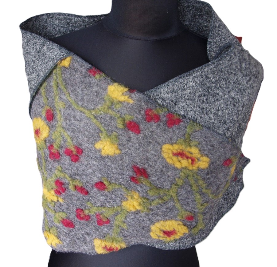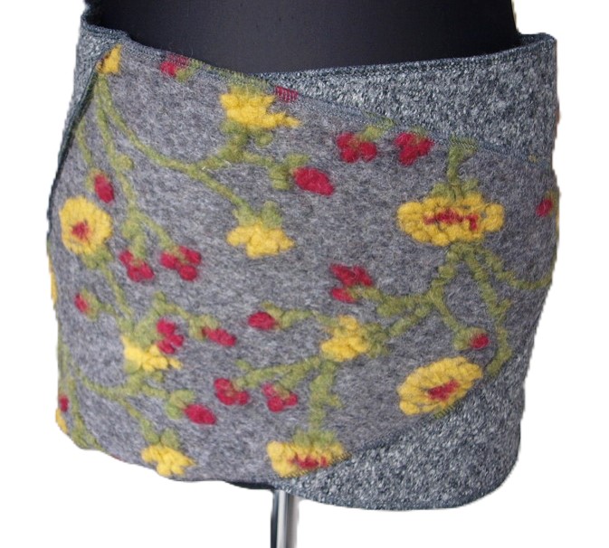 Hüftgürtel, Hüftschmeichler, Cacheur Grau mit Musterwalkstoff Blumen gelb auf grau