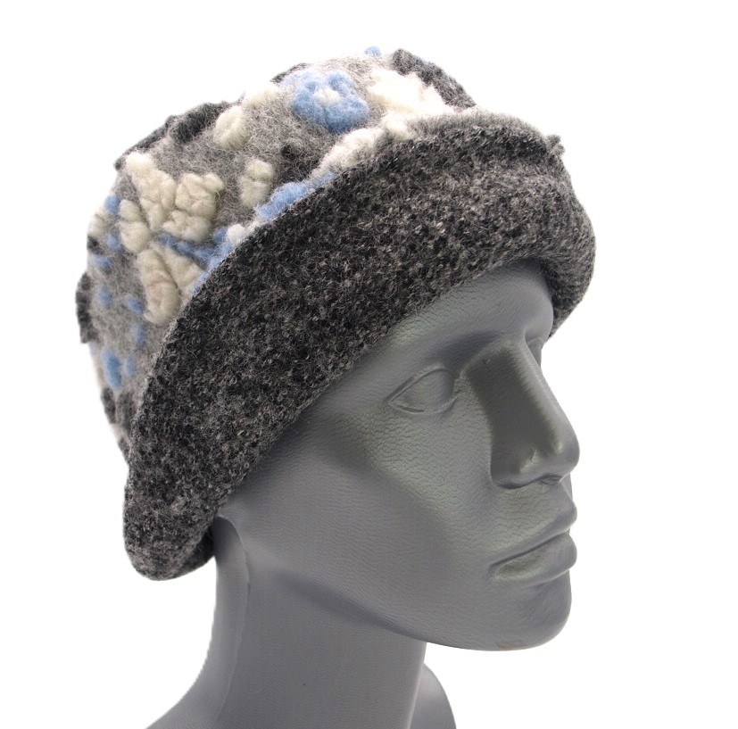 Warmer Hut aus hochwertigem Musterwalkstoff, hervorgehobenes Muster, gefüttert mit Uni Walkstoff