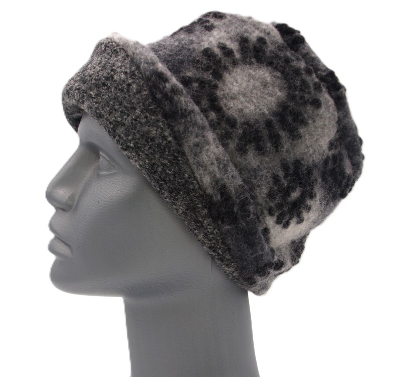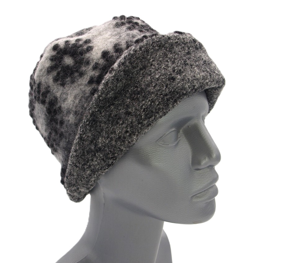 Warmer Hut aus hochwertigem Musterwalkstoff, hervorgehobenes Muster, gefüttert mit Uni Walkstoff
