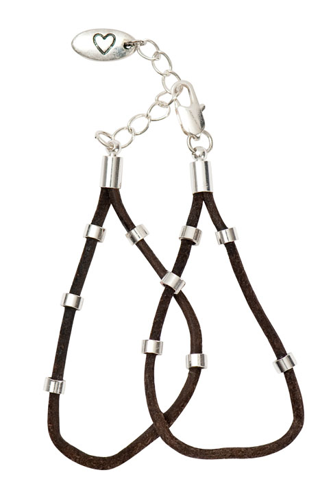 Lederarmband mit Nuggets dunkelbraun silber 7090.68.25