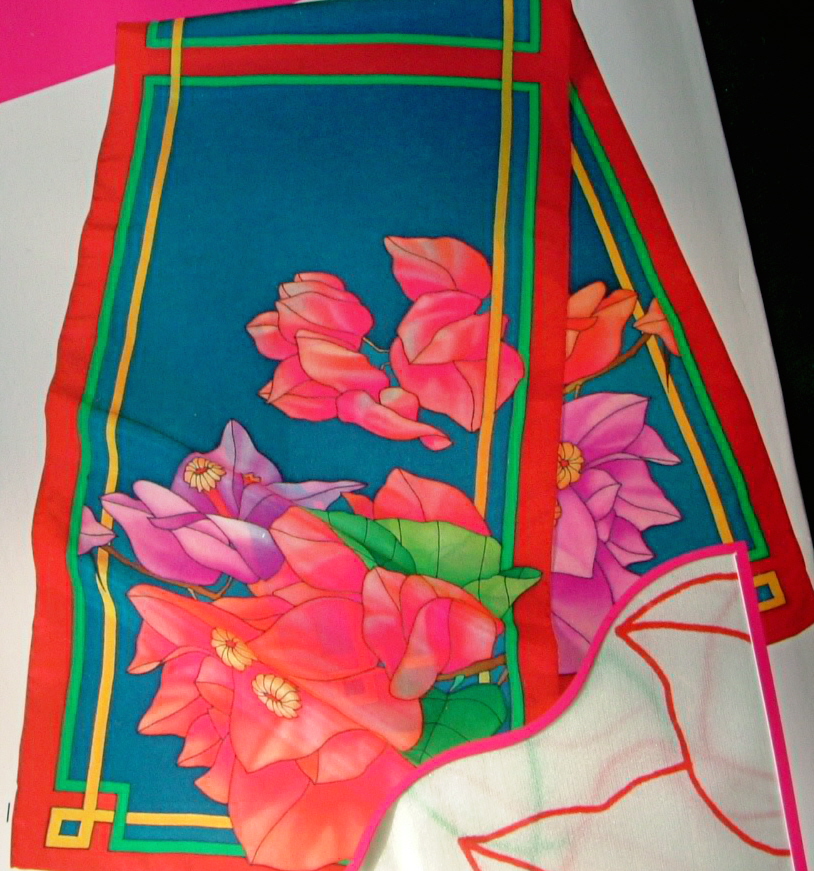 MALTA GUTTA-SEIDENSCHAL 45x180 PONGE 5 Konturen schwarz