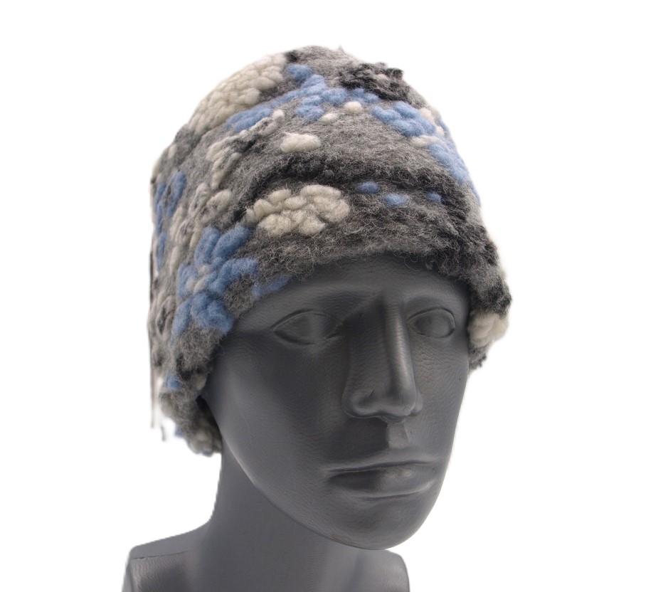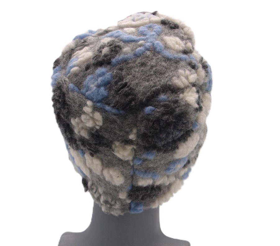 Mütze Musterwalkstoff Blumen auf hellblau Walk gefüttert handgefertigt