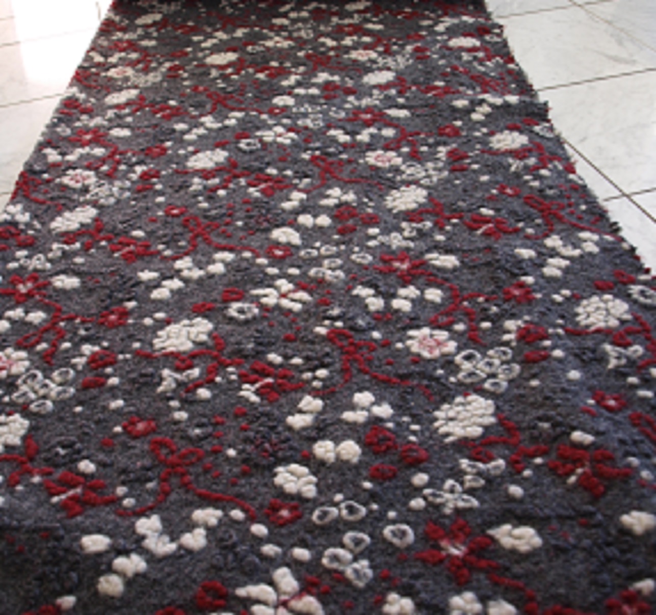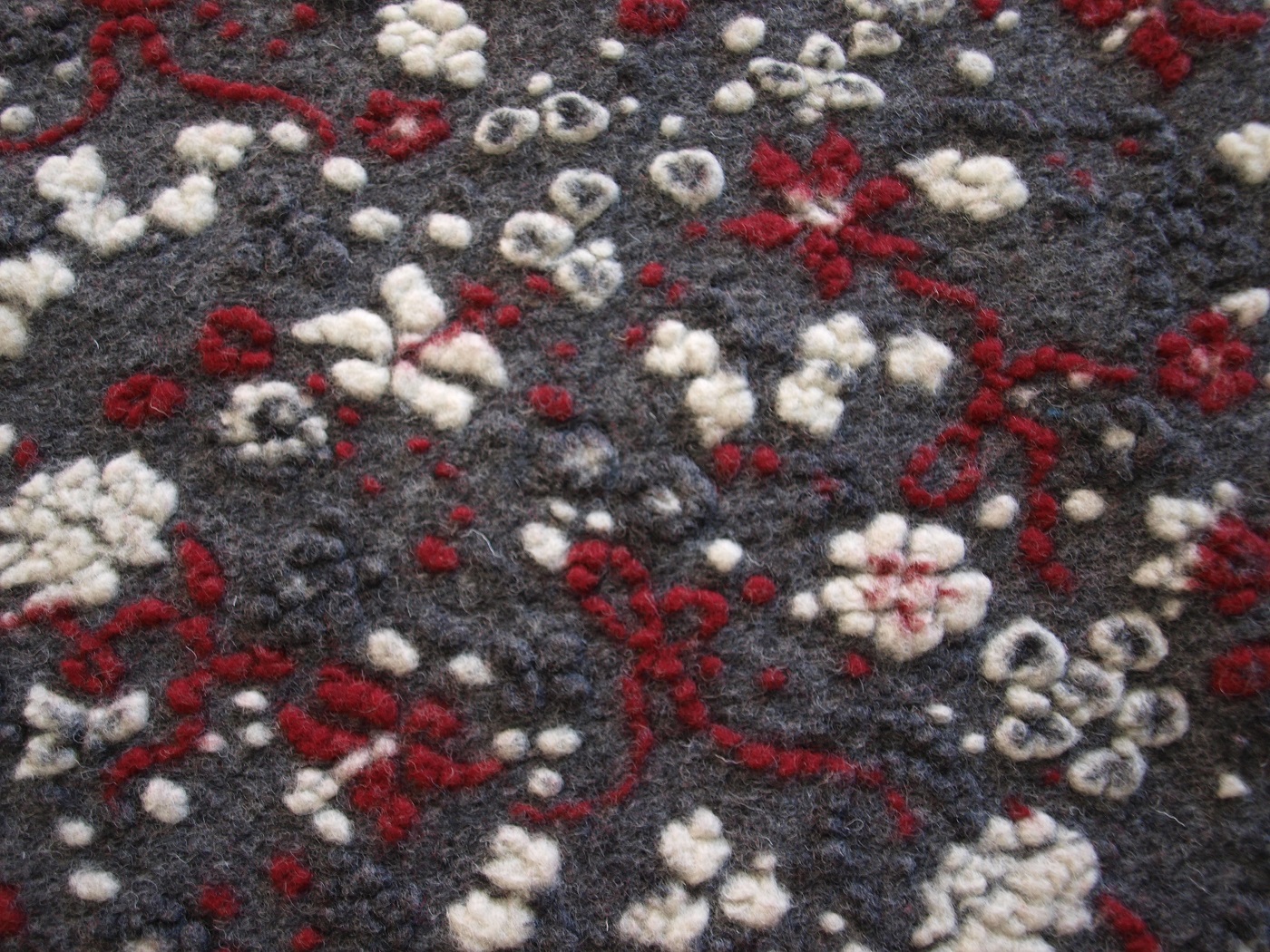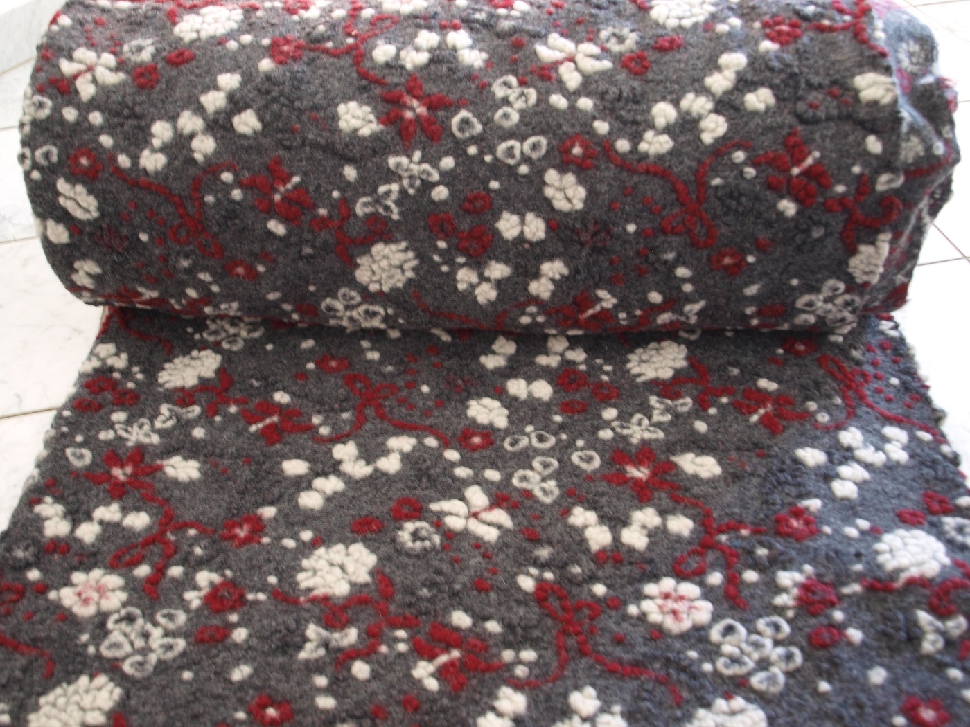 Musterwalk Blumen rot weiß auf grau Walkloden Italien Musterwalkstoff