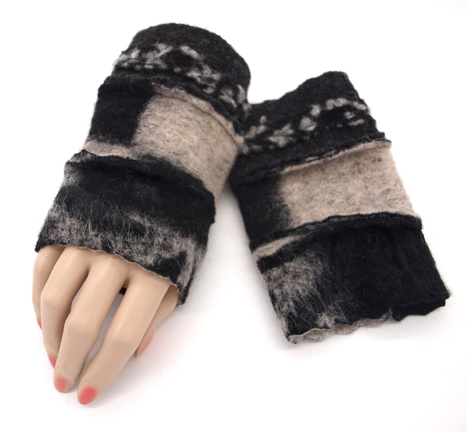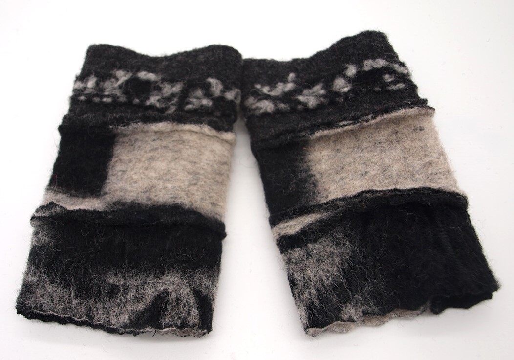 Die Stulpen sind aus verschiedenen Stoffen individuell zusammengestellt.