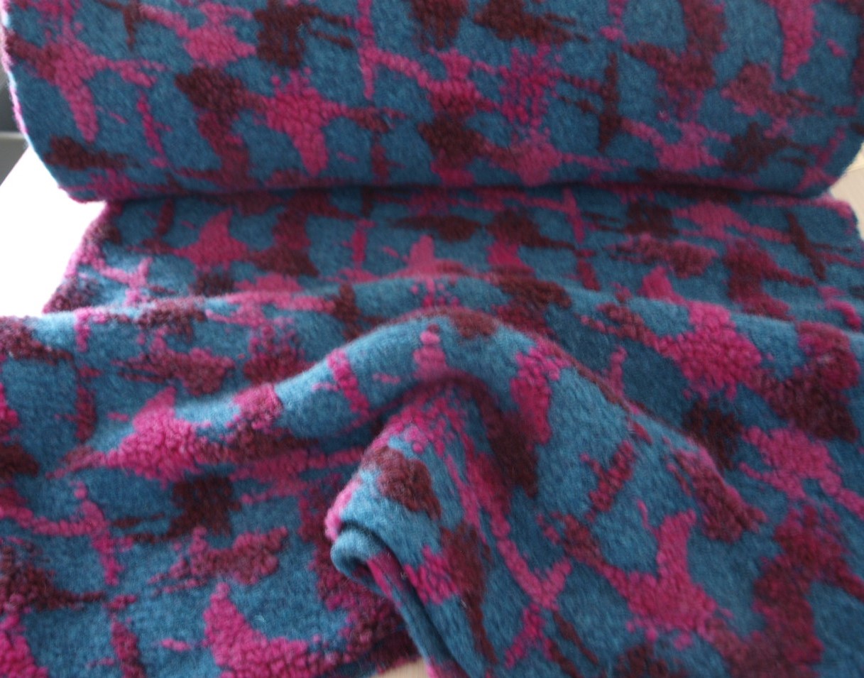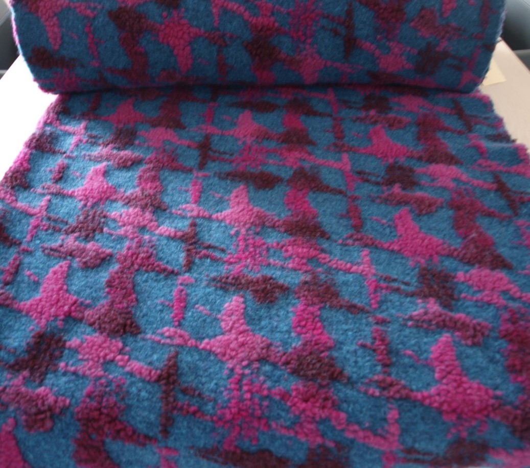 Musterwalk pink auf blau Walkstoff Italien gemustert Walkloden
