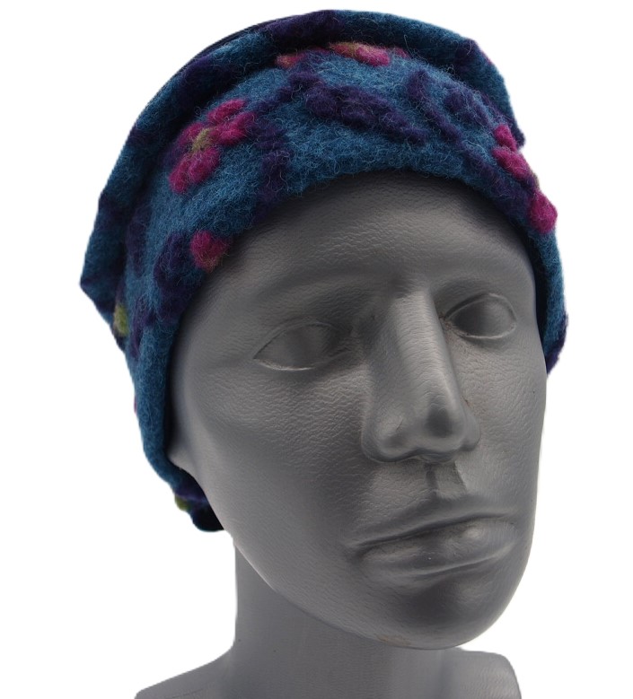 Das Stirnband ist mit Klettverschluß zu Größenverstellung. Die Ansteckblume ist mit Broschennadel verstellbar und nach Wunsch abnehmbar. Es ist beidseitig tragbar. Das Stirnband ist mit Nickistoff gefüttert
