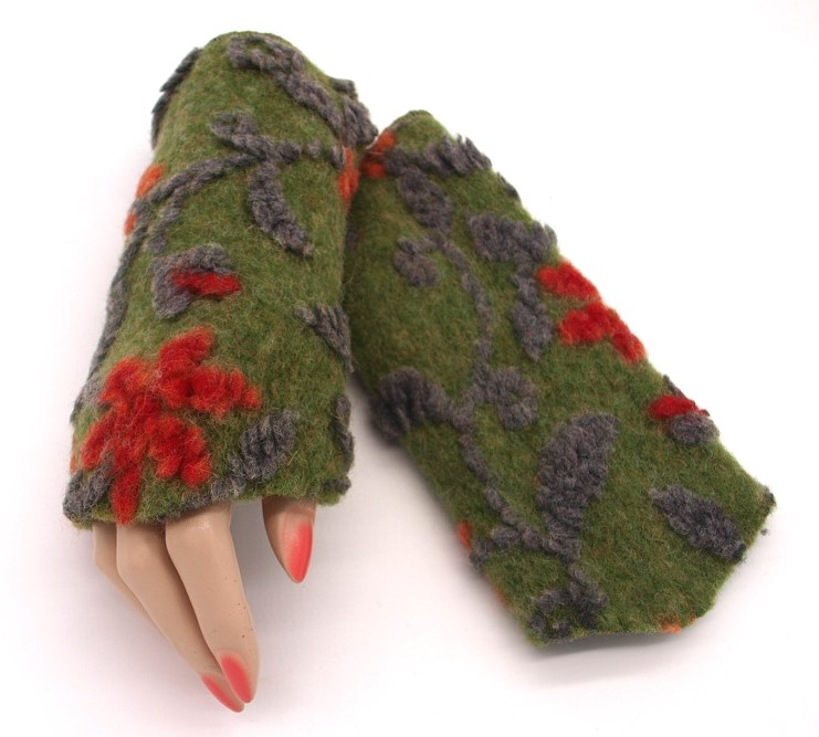 STULPEN BLUMEN ORANGE AUF GRÜN HANDGEFERTIGT