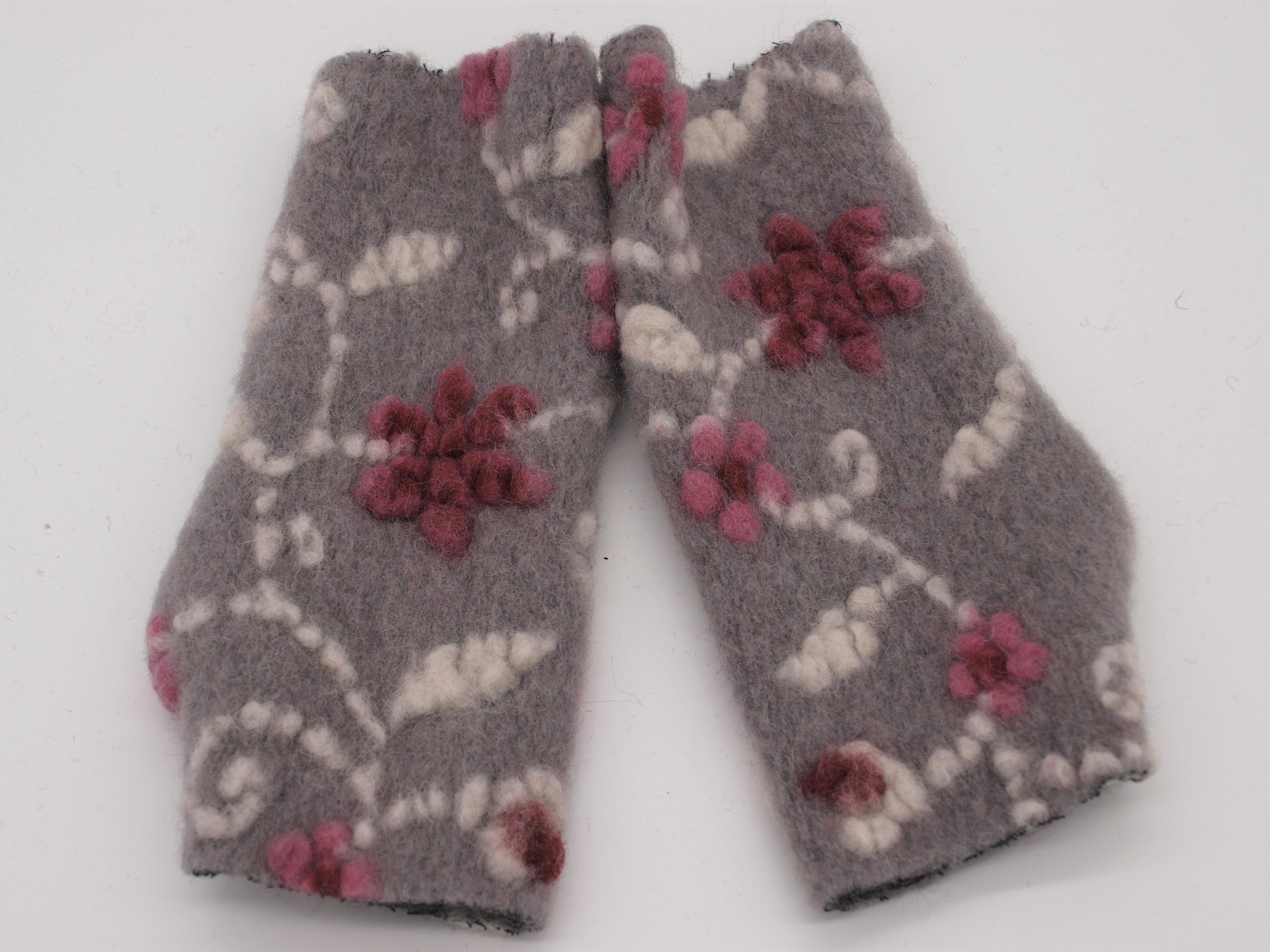 STULPEN BLUMEN rosa und rot auf hellgrau HANDGEFERTIGT mit Daumenloch