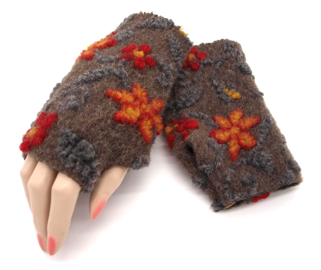 Mobile Preview: STULPEN Blumen orange auf braun HANDGEFERTIGT mit Daumenloch