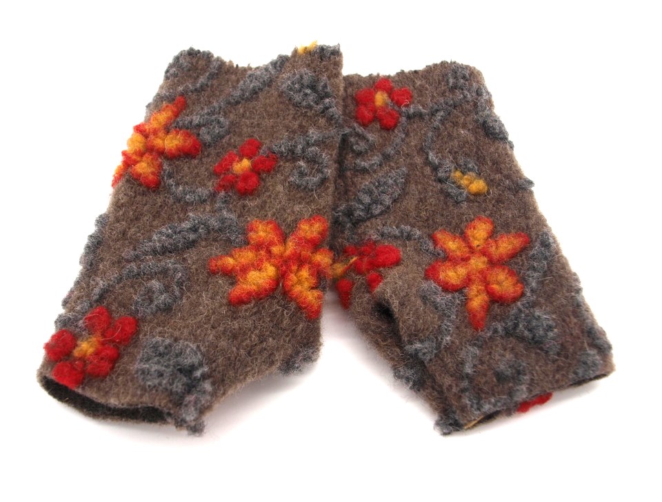 STULPEN Blumen orange auf braun HANDGEFERTIGT mit Daumenloch