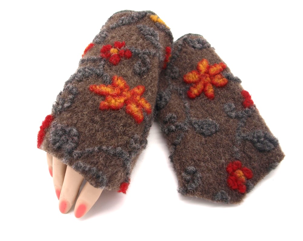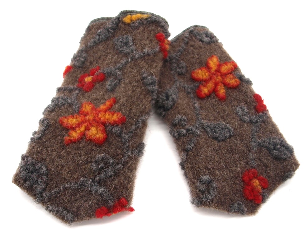 STULPEN Blumen orange auf braun mit Sptitze HANDGEFERTIGT