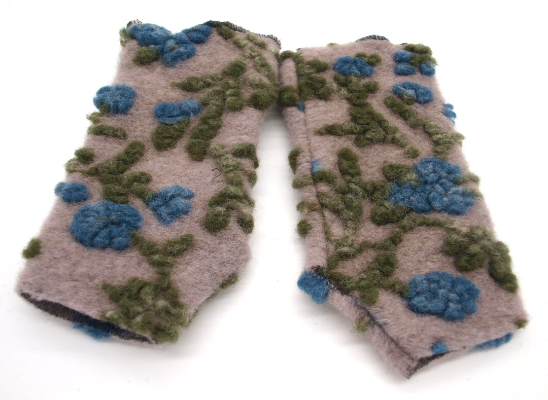 STULPEN Blumen blau auf beige HANDGEFERTIGT mit Daumenloch