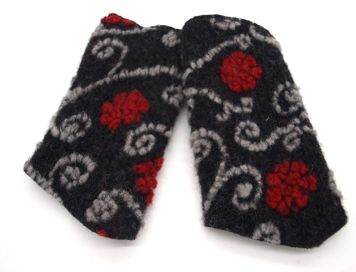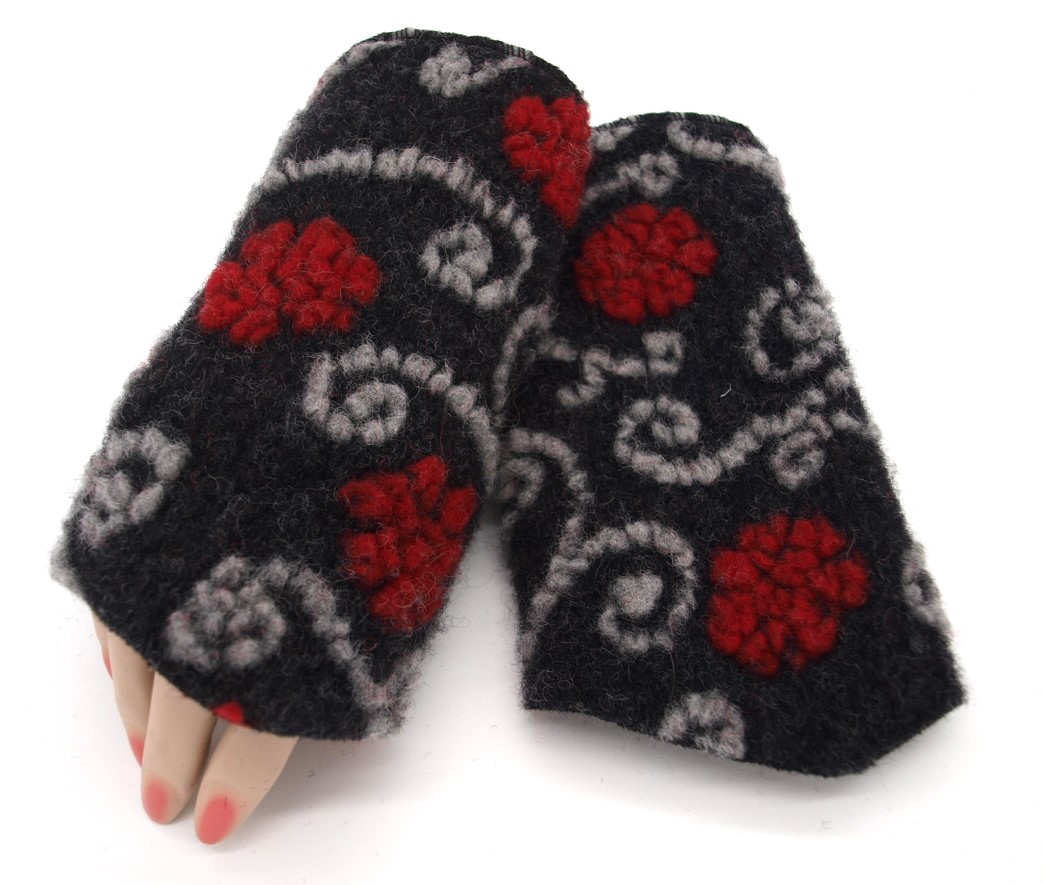 STULPEN GRAU MIT ROTEN Blumen HANDGEFERTIGT mit Spitze