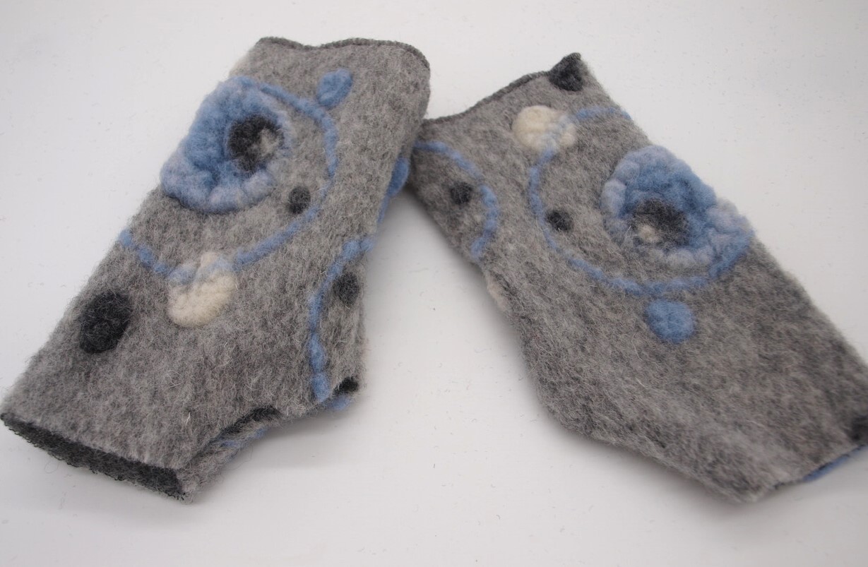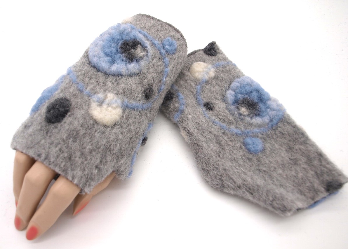 Mobile Preview: STULPEN Kreise hellblau auf grau HANDGEFERTIGT mit Daumenloch