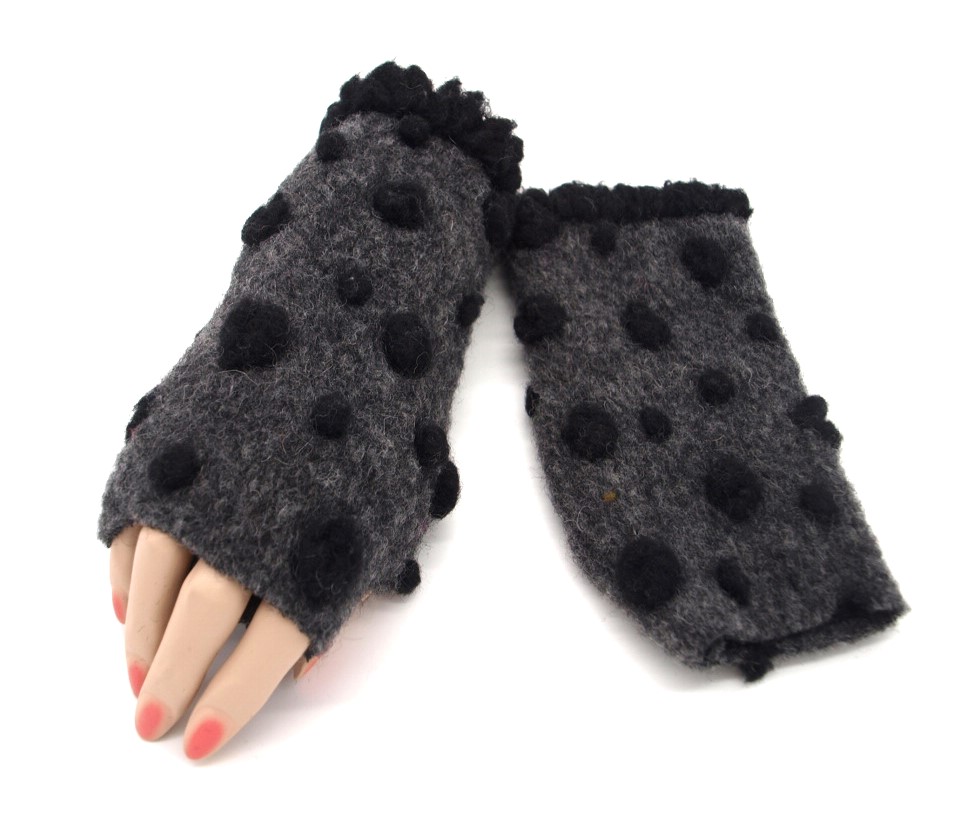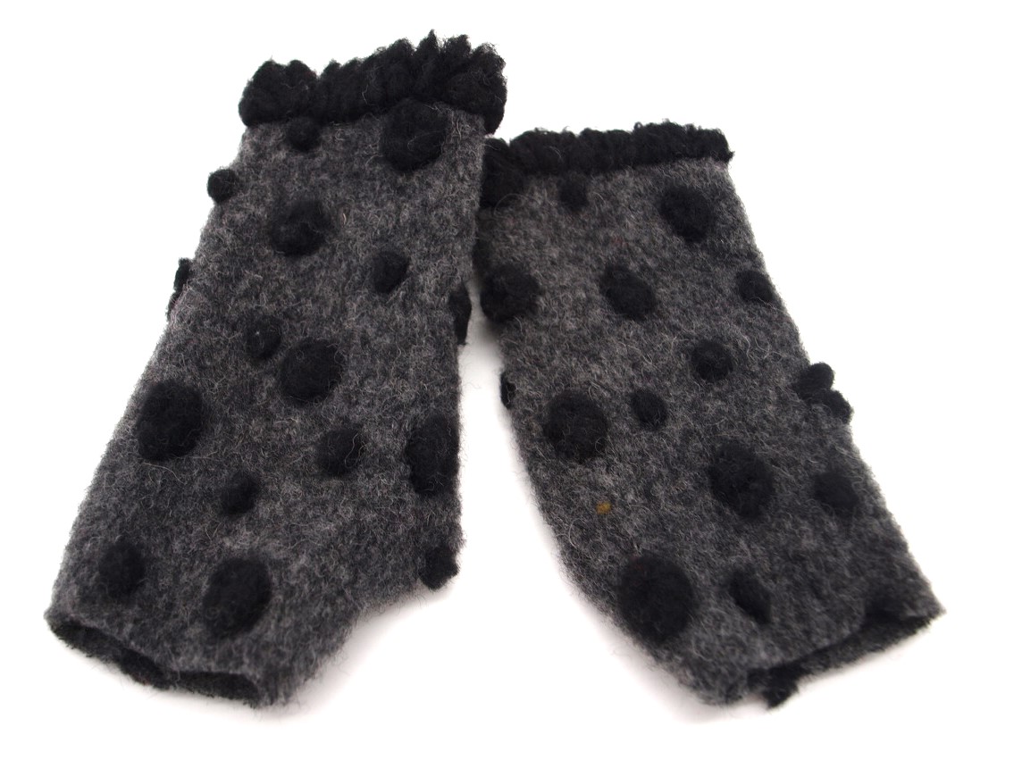 Preview: STULPEN Punkte schwarz auf anthrazit HANDGEFERTIGT mit Daumenloch
