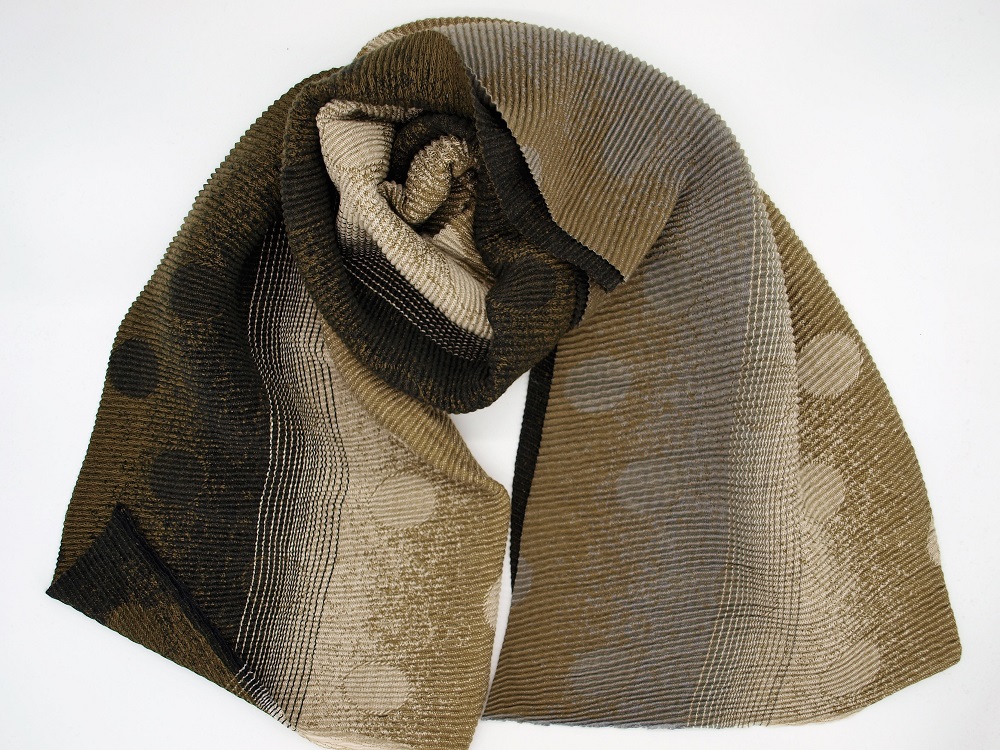 Schal gerippt oliv Farbverlauf Punkte 65% Viskose, 35% Wolle