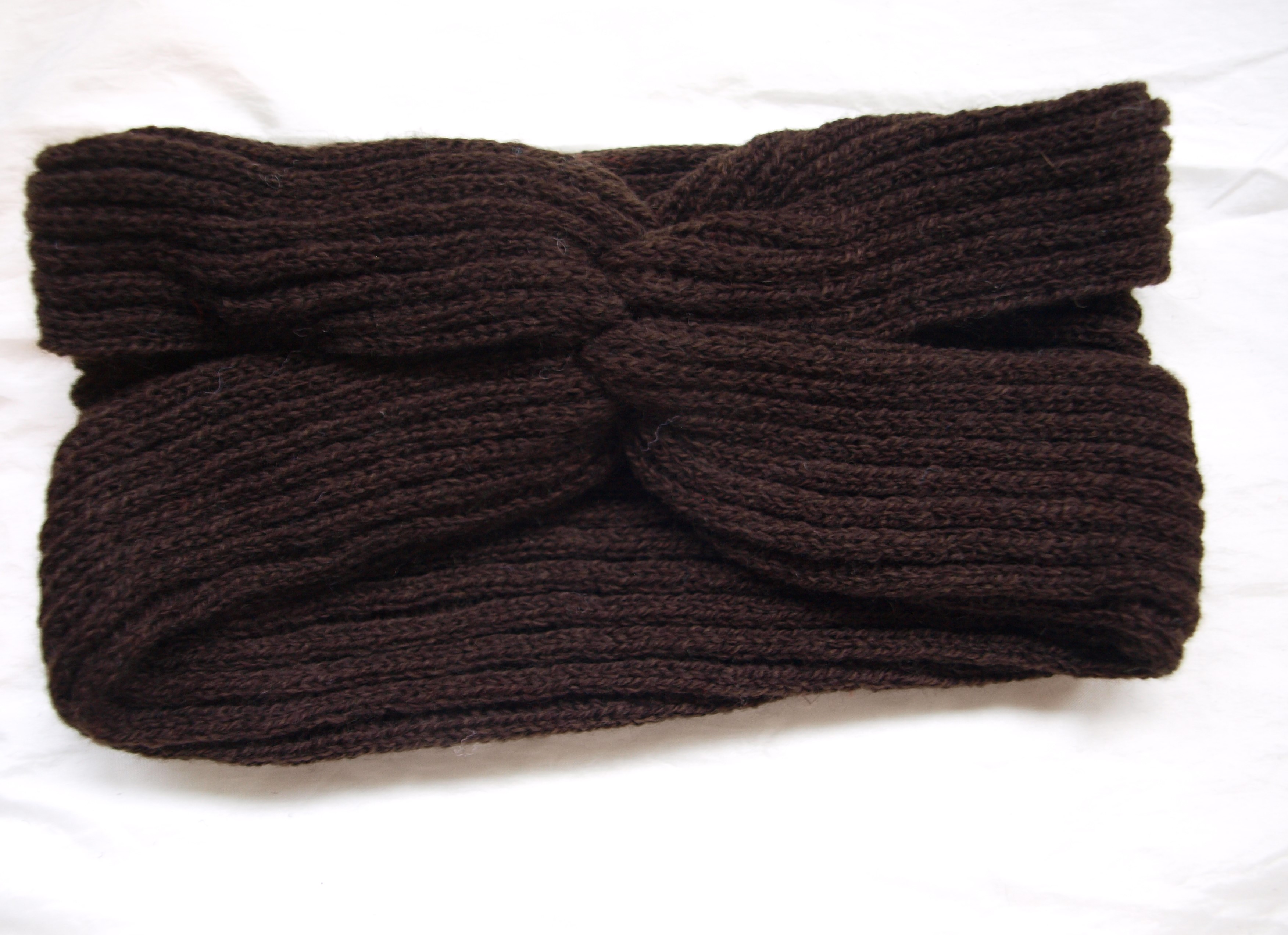 Stirnband Strick vorne gekreuzt dunkelbraun