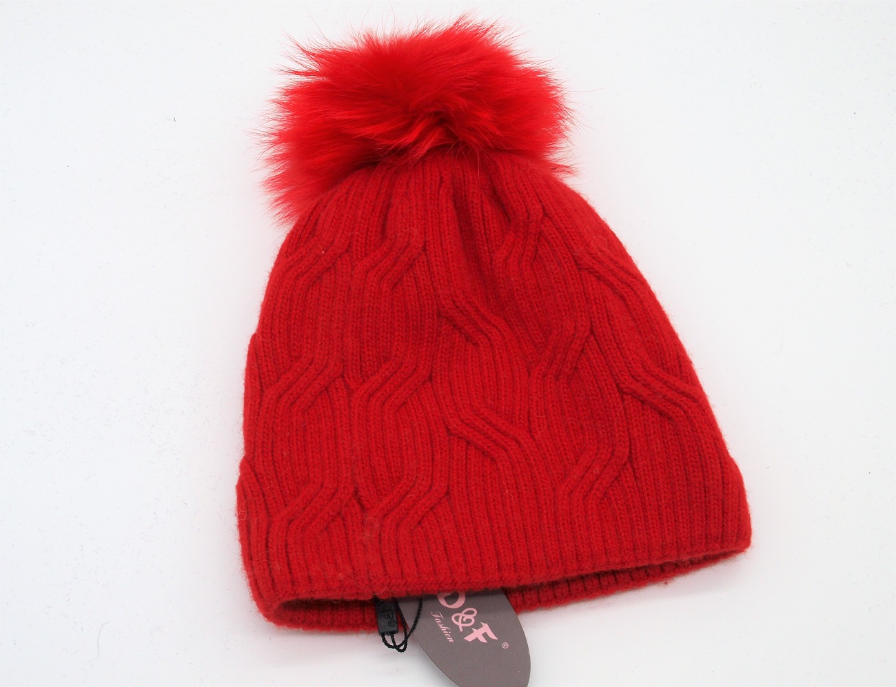 Strickmütze mit Bommel rot Echtpelz abnehmbar