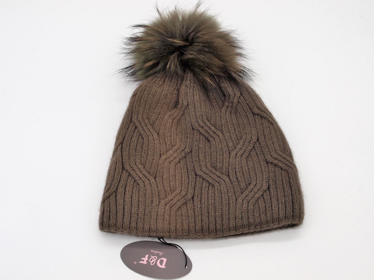 Strickmütze mit Bommel khaki Echtpelz abnehmbar