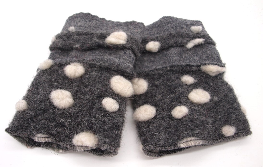 Die Stulpen sind aus verschiedenen Stoffen individuell zusammengestellt.