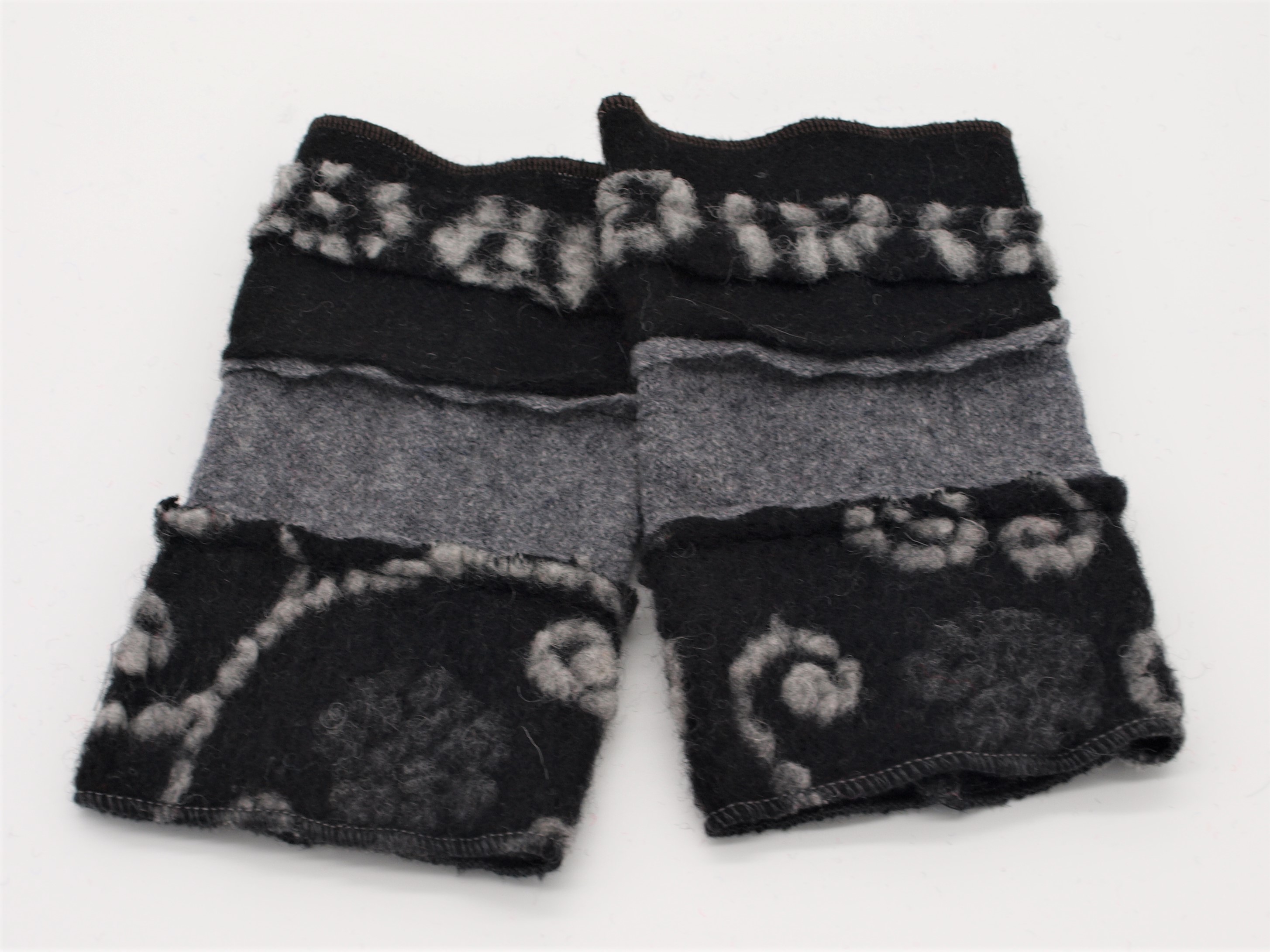 Die Stulpen sind aus verschiedenen Stoffen individuell zusammengestellt.
