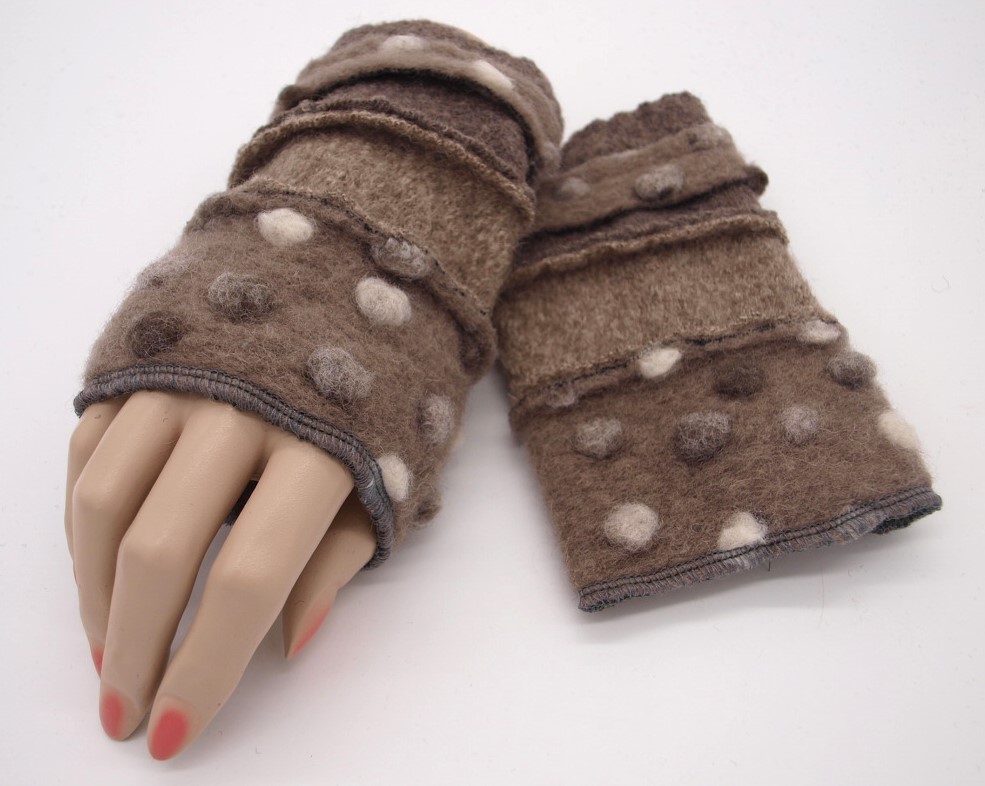 Stulpen Pulswärmer Unikat Punkte auf beige