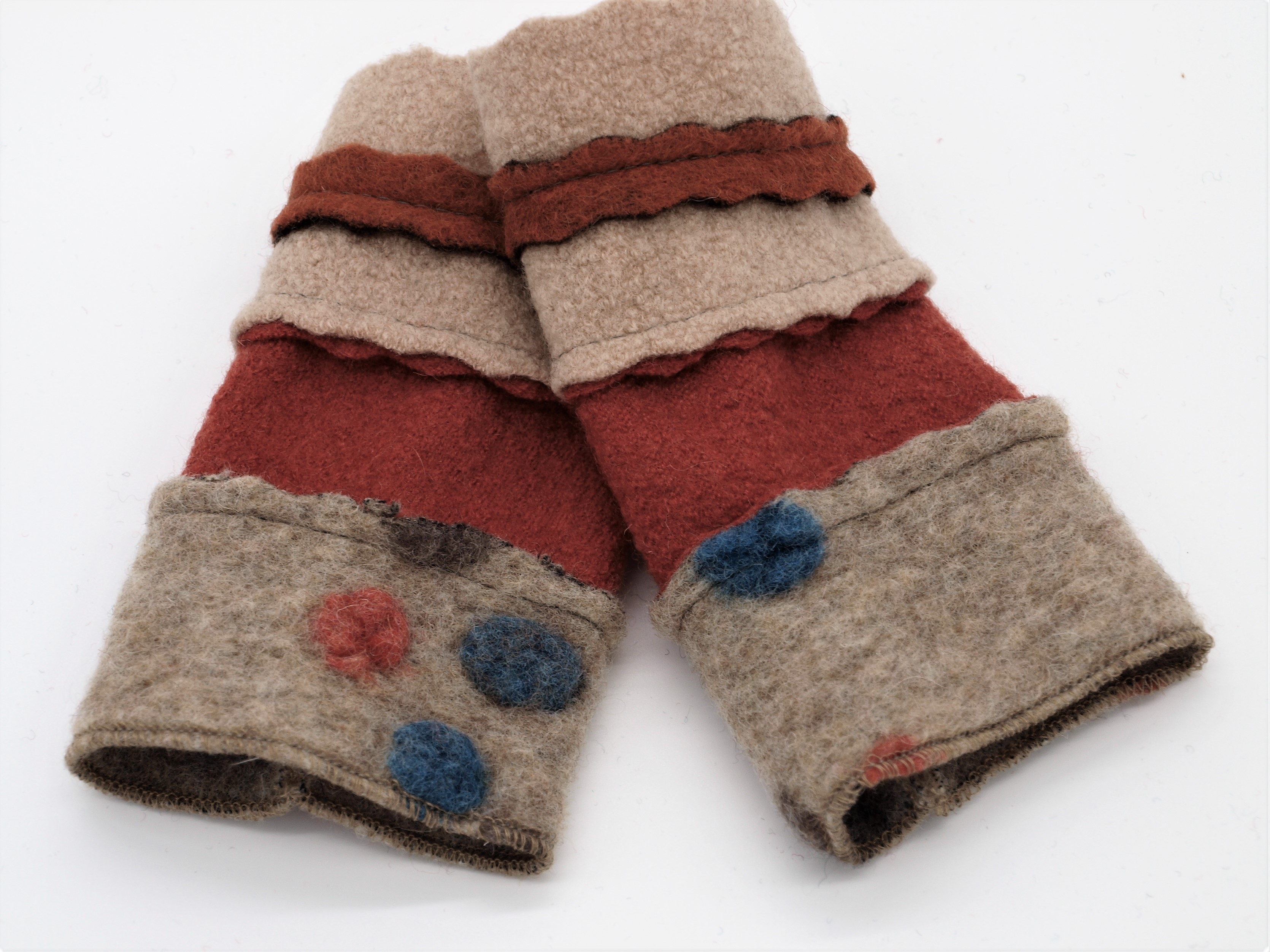 Die Stulpen sind aus verschiedenen Stoffen individuell zusammengestellt.