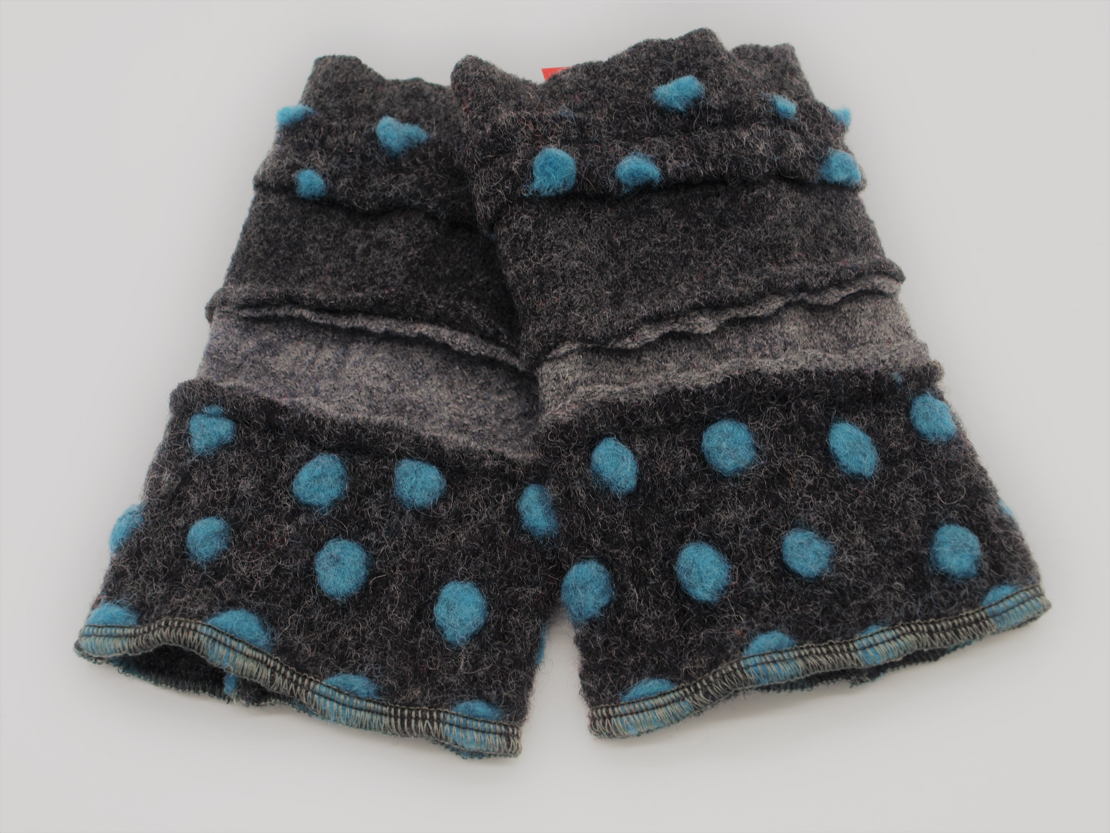 Stulpen Pulswärmer Unikat Punkte türkis-grau